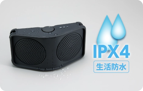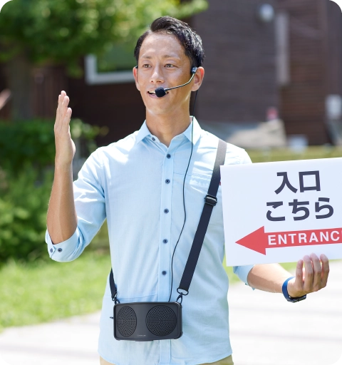 IPX4相当の生活防水で、屋外の誘導やイベントでも安心