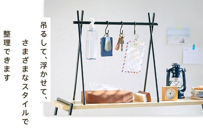 S字フックとハンモックで自由にアレンジも出来ます。