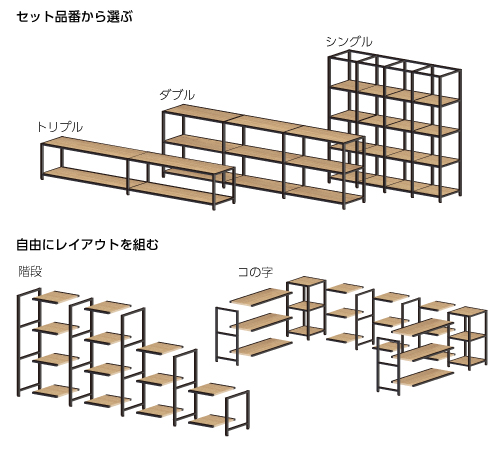 レイアウトの組み方は2種類。空間に合わせて自由に、柔軟に選べます。